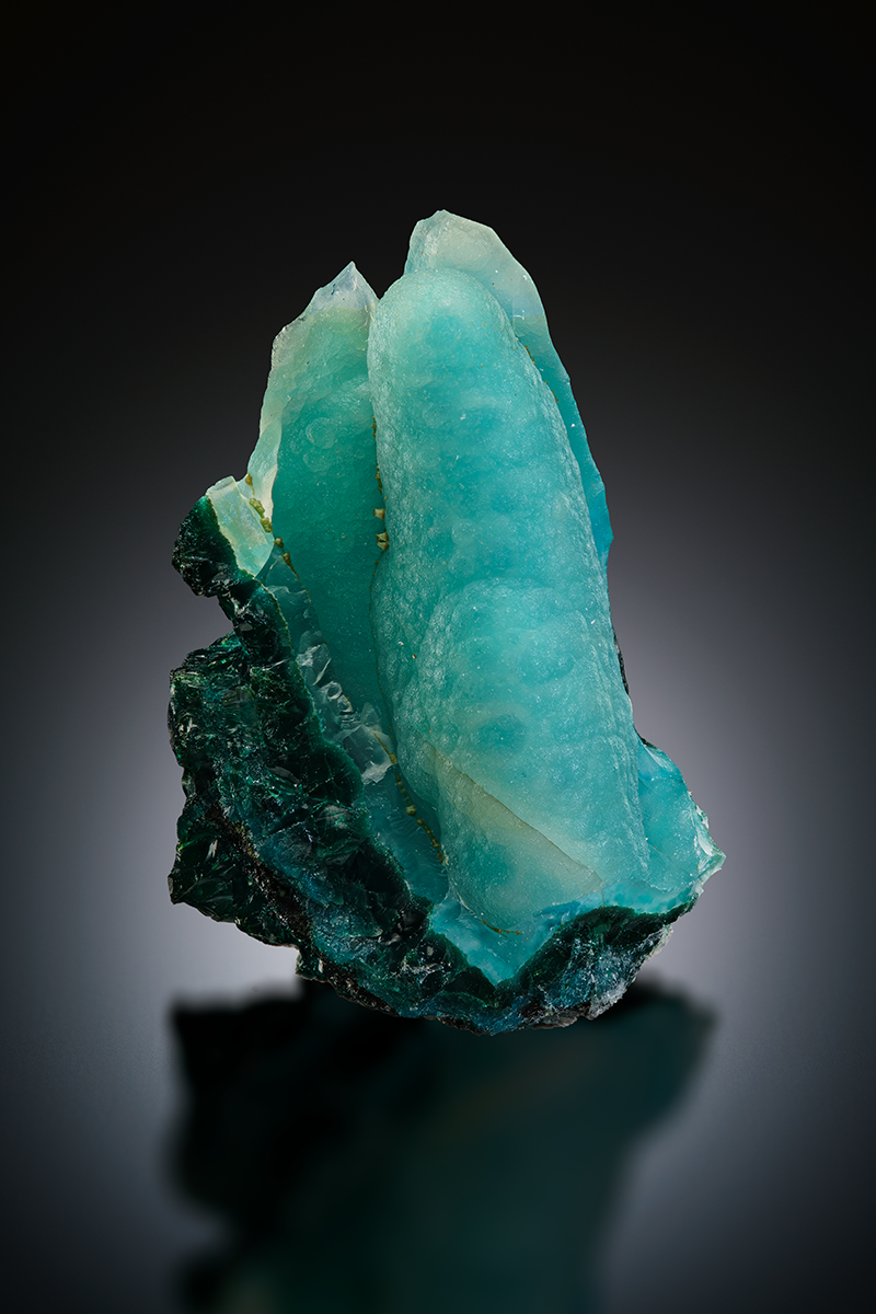 石英の膜で覆われたクリソコラの鍾乳状結晶。Ray鉱山の逸品。